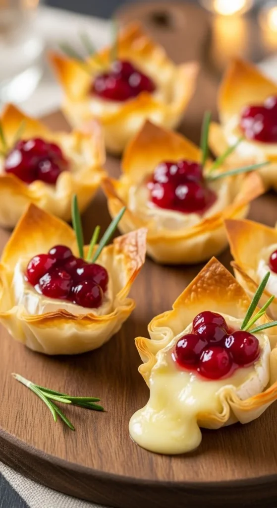 These look fancy but take just minutes. Fill pre-baked phyllo shells with a cube of brie and a spoon of cranberry sauce. Warm in the oven for 8 minutes until gooey. Serve warm for that perfect sweet-salty combo. A sprinkle of rosemary adds a festive aroma.
