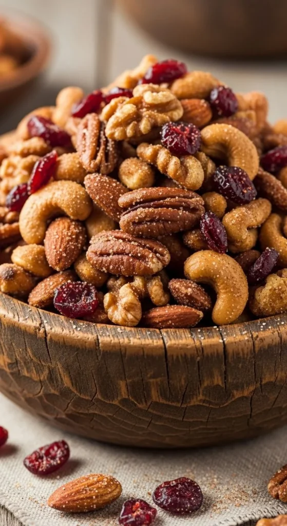 Mix almonds, pecans, and cashews with a bit of maple syrup, cinnamon, and salt. Roast for 20 minutes until glossy and fragrant. Store in jars for snacking or gifting. This mix is addictive—sweet, salty, and perfectly crunchy.
